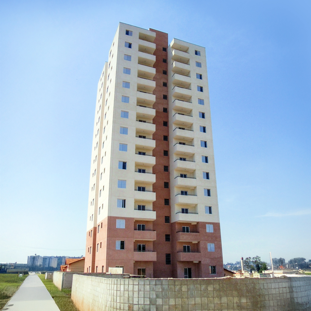 Total de 56 apartamentos entregues, divididos em 14 pavimentos, com portaria única no térreo, 2 elevadores e 1 nível de subsolo